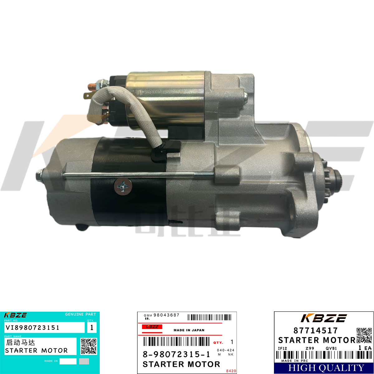 KBZE 8-98072315-1 ISUZU 4LE2 เครื่องยนต์ 24V 11T 3.5KW มอเตอร์สตาร์ท ASSY สำหรับ SK70 SK75 SK80 ZX70 ZX80 ZX85 CX75 CX80